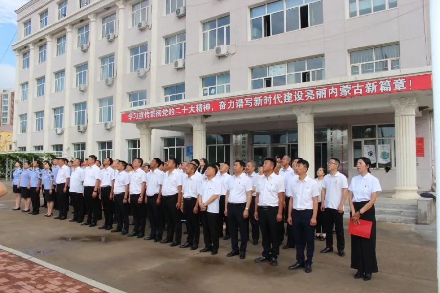 红星闪闪,党旗飘扬。6月29日早7:30,伴随着嘹亮的国歌声,鲜艳的五星红旗冉冉升起,农牧和科技局全体党员干部肃然站立,面向国旗行注目礼。在国家高度重视农牧业发展的今天,扎赉特旗作为农牧业大旗,农牧业发展势头强劲,作为新时代的农科人,要不忘初心、不负韶华、不辱使命,蓄势待发,同各民族群众像石榴籽一样紧紧团结在一起,在推动农牧业高质量发展的大潮中干在实处、走在前列!