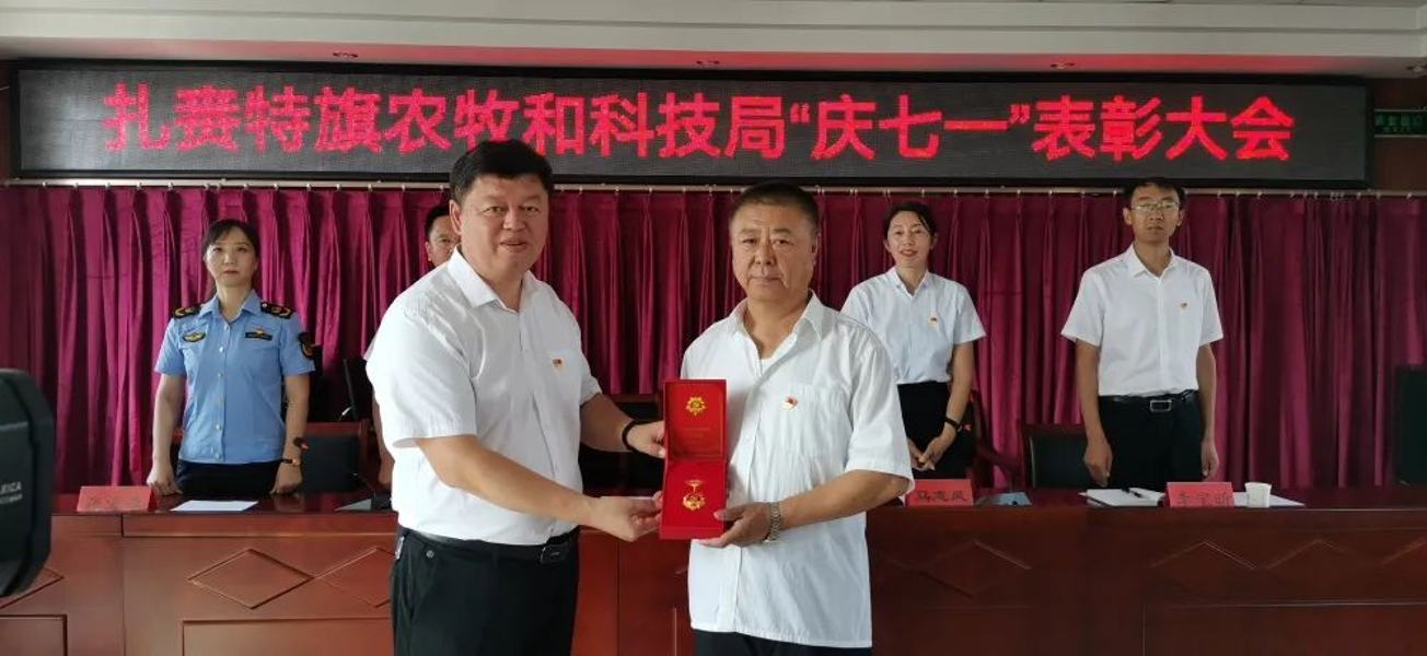6月29日上午,农牧和科技局召开“庆七一”表彰大会,为“光荣在党50年”的老党员颁发纪念章,并表彰一批党性原则强、作风正派、工作成绩突出、干群团结的优秀共产党员、优秀党务工作者和“学习强国”学习标兵。