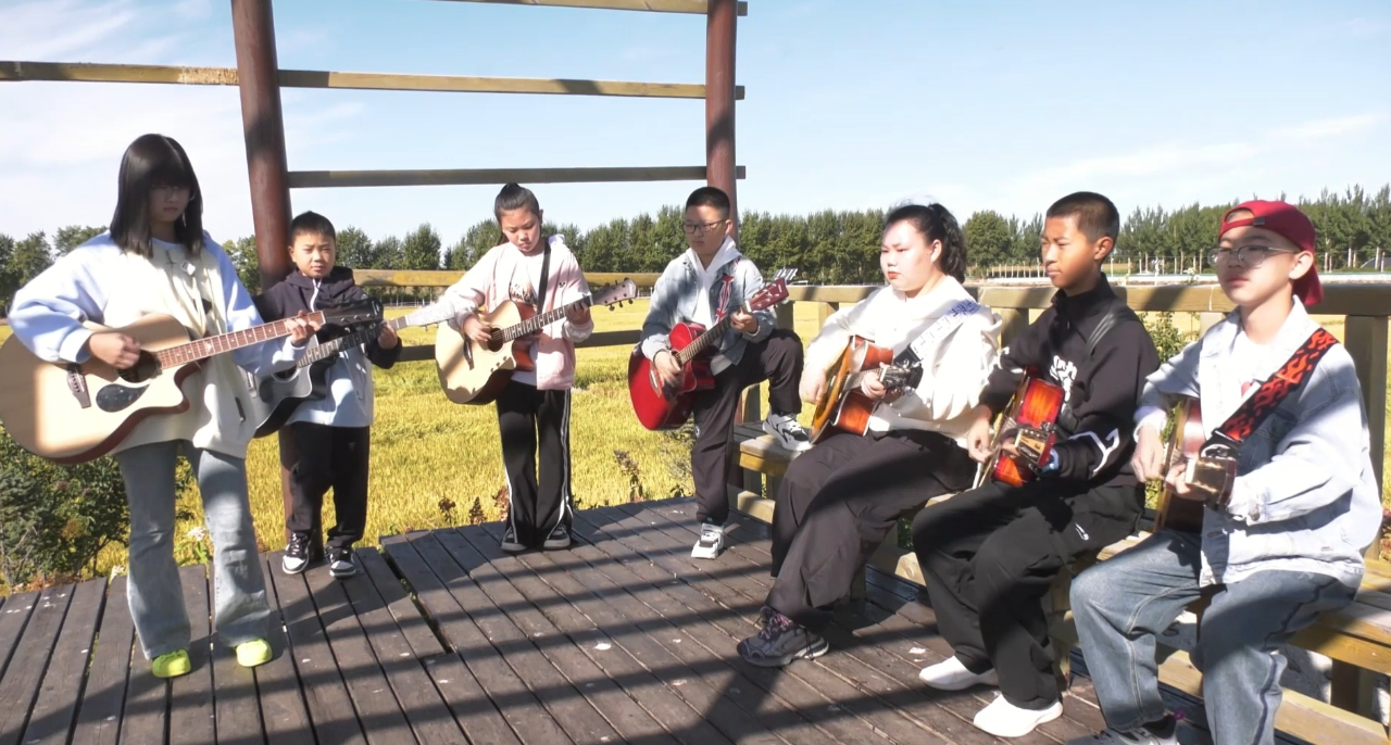 “我是第一次在稻田里吹奏,这里景色特别好看,整个人都放松了,是一种不一样的体验。”稻田音乐会表演者齐乐说。