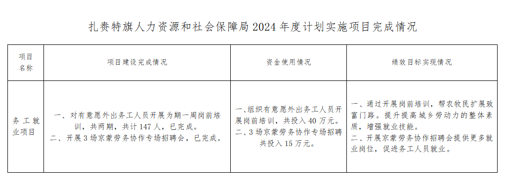 附件:扎赉特旗人力资源和社会保障局2024年度计划实施项目完成情况
