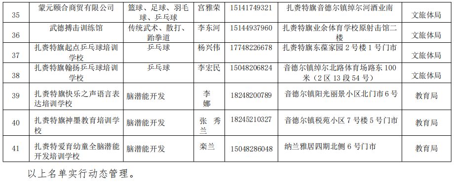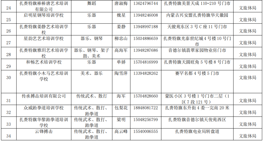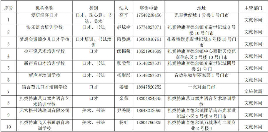 扎赉特旗校外培训机构白名单公示如下(截止时间2025年7月1日,排名不分先后):