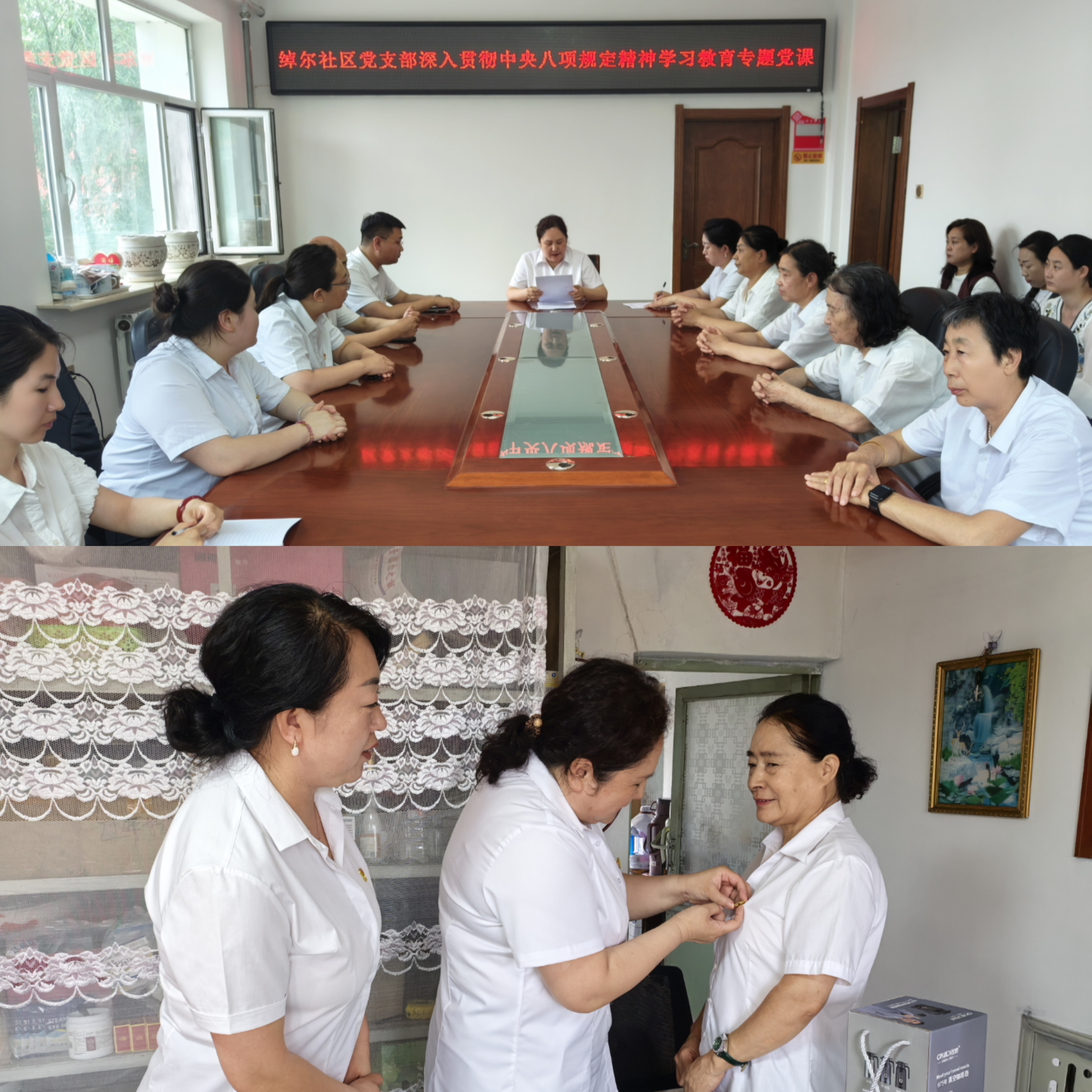 绰尔社区党支部书记吕艳同志讲授专题党课,并为老党员佩戴党员徽章。同时以此次专题党课为契机,持续强化廉政教育,完善监督机制,常态化开展自查自纠,推动中央八项规定精神在社区落地生根,为建设和谐幸福社区提供坚强纪律保障。