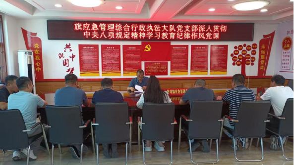 7月2日,扎赉特旗应急管理综合行政执法大队党支部召开支部书记讲纪律作风党课,旗应急管理综合行政执法大队党支部书记张国华以“加强作风建设 提升执法效能”为题,为全体支部党员讲授纪律作风党课。