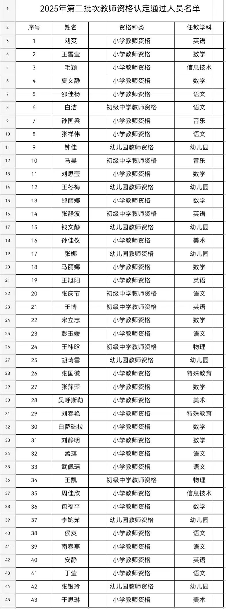 附件:2025年第二批次教师资格认定通过人员名单