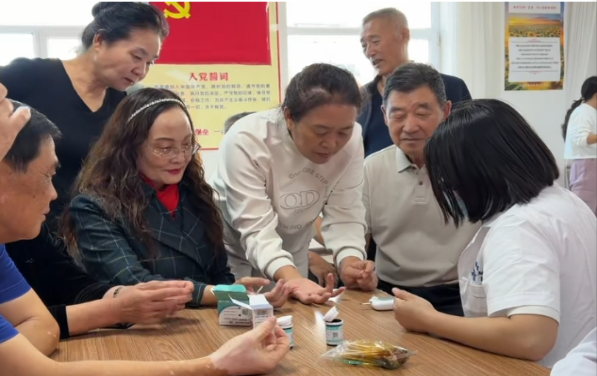 活动现场人气十足,丰富的服务内容精准对接居民需求。现场设置四大功能区,服务高效又暖心:健康咨询区内,医护人员耐心倾听老人们的健康困扰,从日常护理到慢性病管理,逐一给出专业解答;常规检测区里,工作人员细致为老人测量血压、血糖,认真记录每一项数据,为后续健康管理提供参考;康复理疗区最受青睐,理疗师针对老人常见的颈椎、肩周不适,一边开展专业按摩缓解疼痛,一边手把手传授居家保健小技巧;在惠民政策宣传区,工作人员通过发放宣传手册、现场答疑等形式,向群众详细解读育儿补贴发放、家庭医生签约服务等与群众生活密切相关的惠民政策,用通俗易懂的语言将“政策红利”转化为群众“听得懂、用得上”的实用信息,让群众真切感受到党的政策带来的实惠。