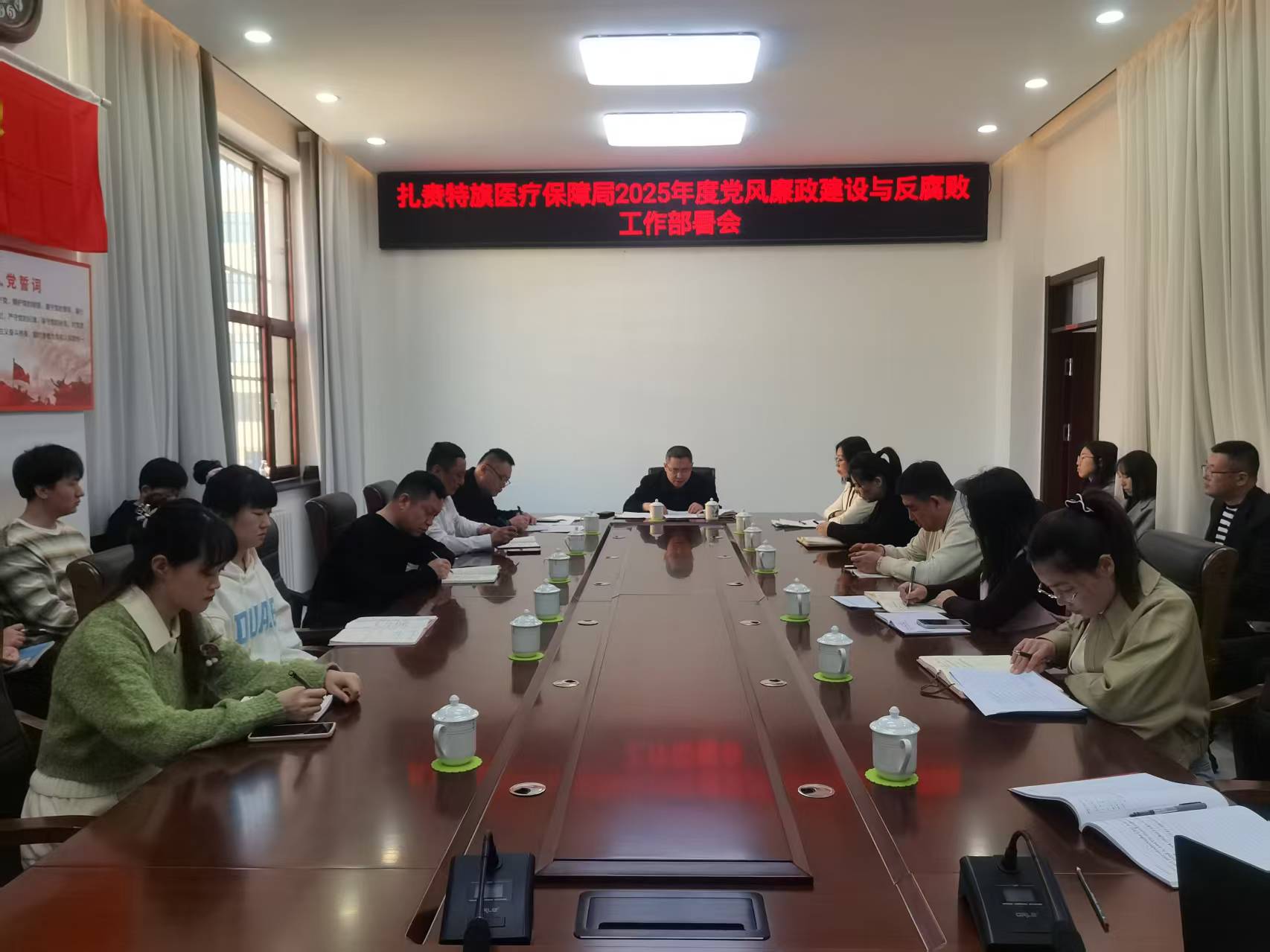 3月24日,扎赉特旗医疗保障局召开2025年度党风廉政建设和反腐败工作会议,全面总结2024年工作,部署2025年任务,局党组书记韩鸿印主持会议,旗纪委监委第二纪检组工作人员李红杰及全体干部参加会议。