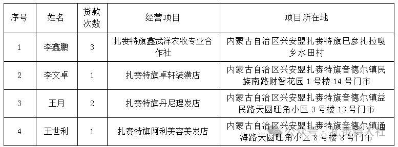 为推动我旗创业担保贷款工作有序开展,经扎赉特旗人力资源和就业服务中心、中国银行股份有限公司扎赉特旗支行共同进行实地入户核实、现场勘察。现将第二批个体工商户资格初审合格名单进行公示,公示时间5天(自2025年5月9日至2025年5月13日)并接受群众和社会各界人士监督。