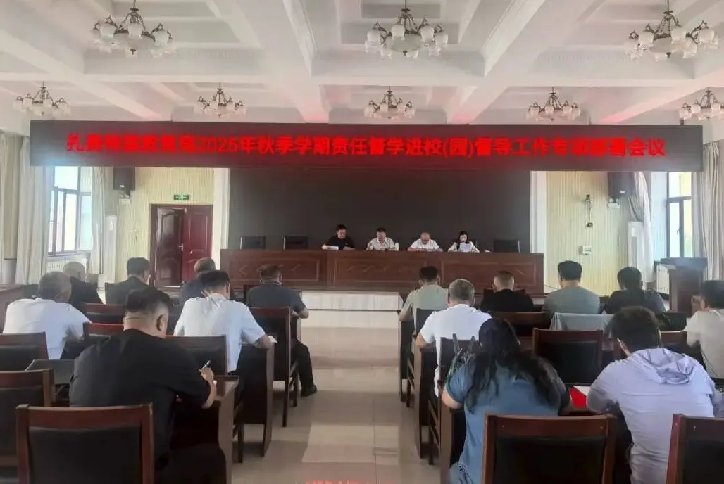 2025年8月28日,扎赉特旗教育局2025年秋季责任督学进校园专项督导部署培训会在教育局四楼会议室召开。本次会议旨在全面贯彻《教育部办公厅关于进一步明确2025年秋季学期责任督学重点工作内容的通知》精神,强化责任督学队伍建设,提升责任督学专项督导水平,高质量完成责任督学进校园专项督导任务,为新学期学校开局起步定向护航。