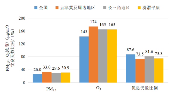 1—9月,京津冀及周边地区“2+36”城市PM2.5平均浓度为33.0微克/立方米,同比下降15.6%;O3平均浓度为174微克/立方米,同比下降7.0%;平均优良天数比例为73.5%,同比上升8.5个百分点;平均重度及以上污染天数比例为0.8%,同比下降1.2个百分点。由沙尘天气导致的平均超标天数比例为3.4%,其中重度及以上污染天数比例为0.3%。