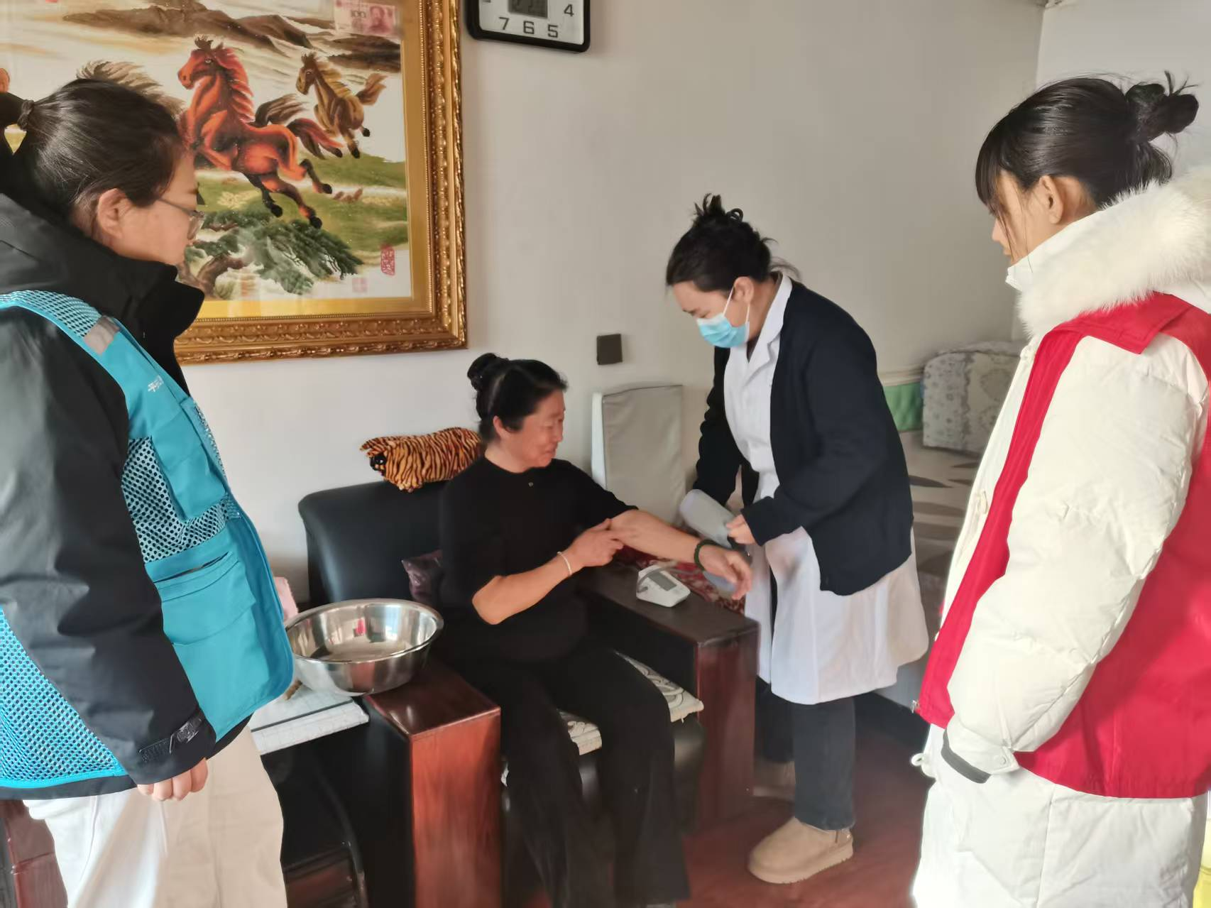 为切实把民生服务落到实处,近日,绰尔社区联合辖区卫生服务中心、第二医共体总医院,共同开展“便民服务进万家”系列活动。通过义诊送健康、关怀暖人心、政策入家门三项务实举措,为高龄独居老人、环卫工人等群体送去贴心保障,筑牢社区安全与民生服务双重防线。活动期间,社区工作者与医护人员组建志愿服务队,逐一走访辖区高龄、独居老人。医护人员为老人们细致测量血压、血糖,全面检查身体状况,针对常见慢性病提供专业用药指导和健康建议,同时耐心倾听老人诉求,详实记录健康档案。社区工作者则协助老人整理居家环境,细致叮嘱日常安全注意事项,让老人们真切感受到家人般的温暖关怀。