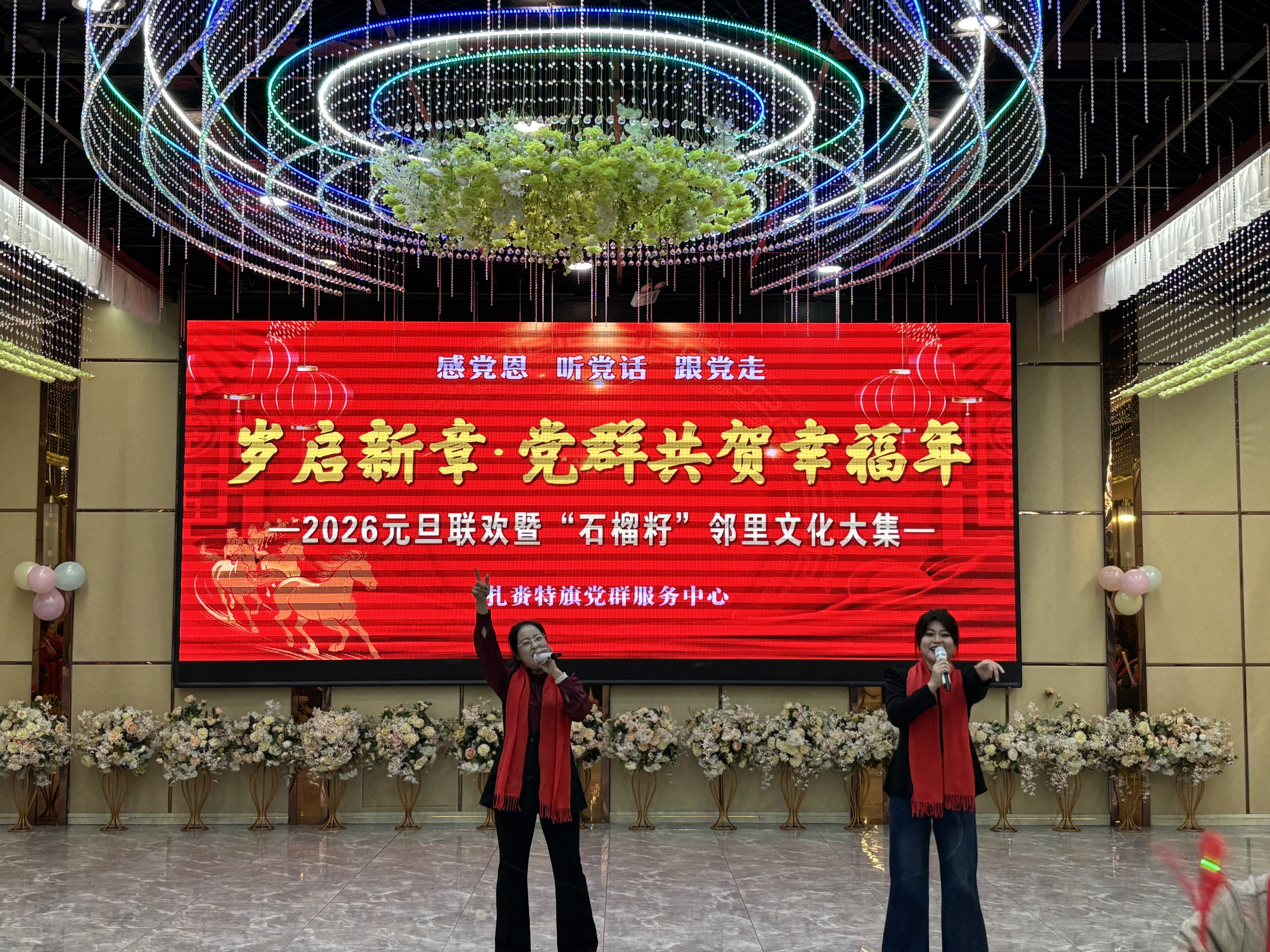 冬韵渐浓添暖意,党群同心谱新篇。扎赉特旗党群服务中心“岁启新章·党群共贺幸福年”2026元旦联欢暨“石榴籽”文化大集活动精彩启幕,以歌舞传情、以游戏助兴、以同心筑梦,在欢歌笑语中共迎元旦佳节,绘就党群一家亲、共筑幸福梦的美好画卷。