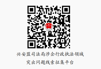 (四)平台举报:可通过微信扫描或长按识别下方“兴安盟司法局涉企行政执法领域突出问题线索征集平台”二维码反映问题线索。
