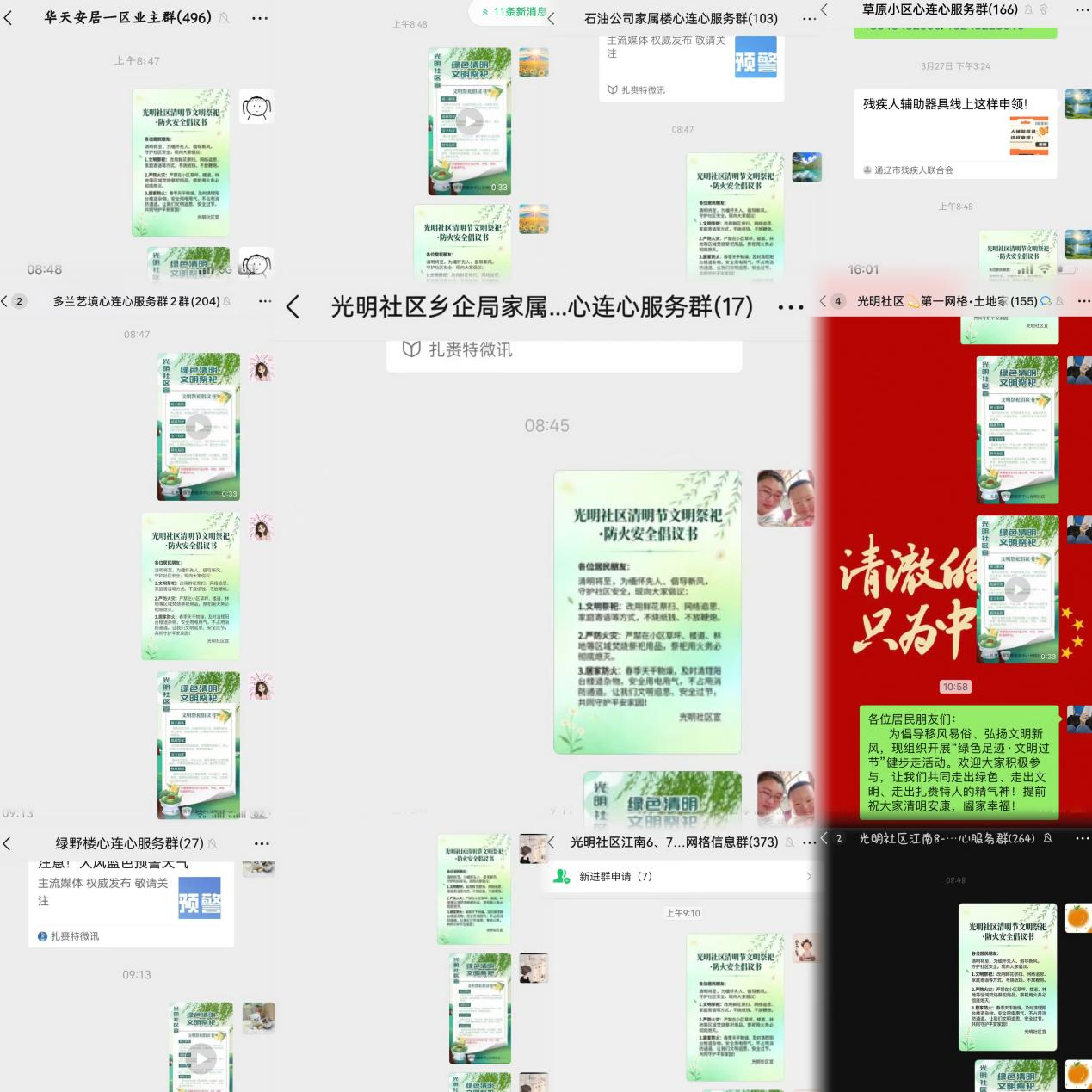 又是一年清明时,哀思悠悠祭英烈。为引导广大居民群众缅怀先辈、文明祭扫,扎赉特旗党群服务中心组织各社区开展清明节系列主题活动。各社区结合自身实际,开展形式多样、内容丰富的纪念活动,共同铭记历史、砥砺前行。