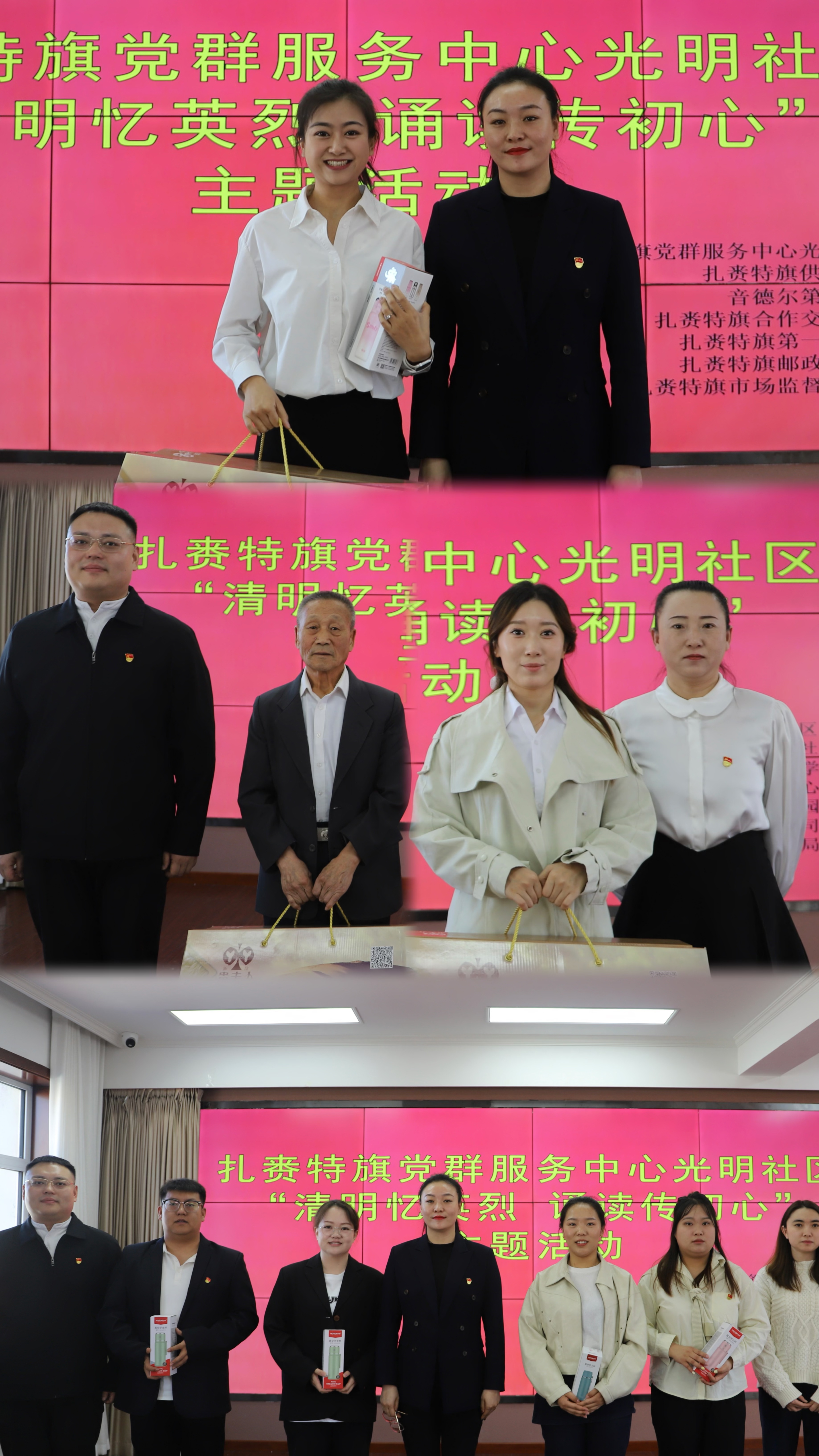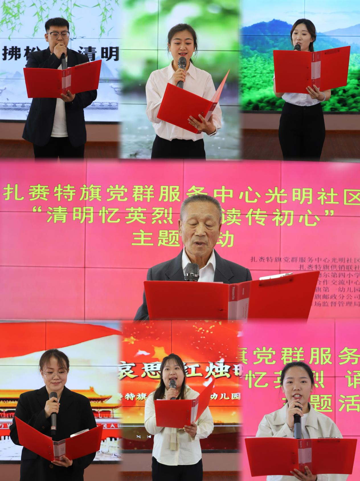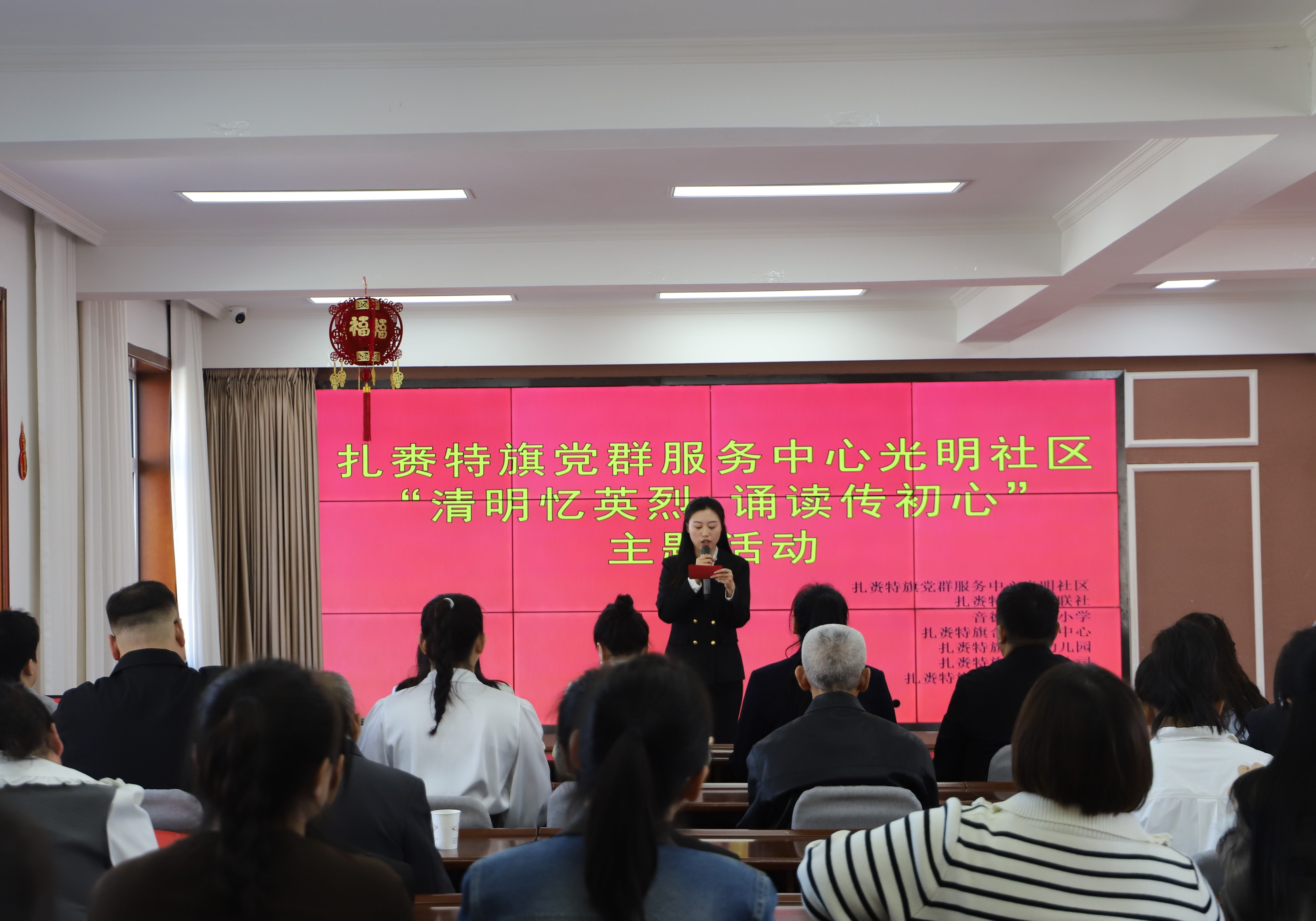 为深切缅怀革命先烈的丰功伟绩,传承红色精神,厚植爱国情怀,同时倡导文明祭祀新风尚,普及春季消防安全知识,4月1日,光明社区新时代文明实践站联合扎赉特旗合作交流中心等四家共建单位在光明社区三楼活动室开展“清明忆英烈诵读传初心”主题活动,社区工作人员、辖区党员、居民代表等共同参与,在庄重温馨的氛围中追忆英烈、感悟初心,践行文明。