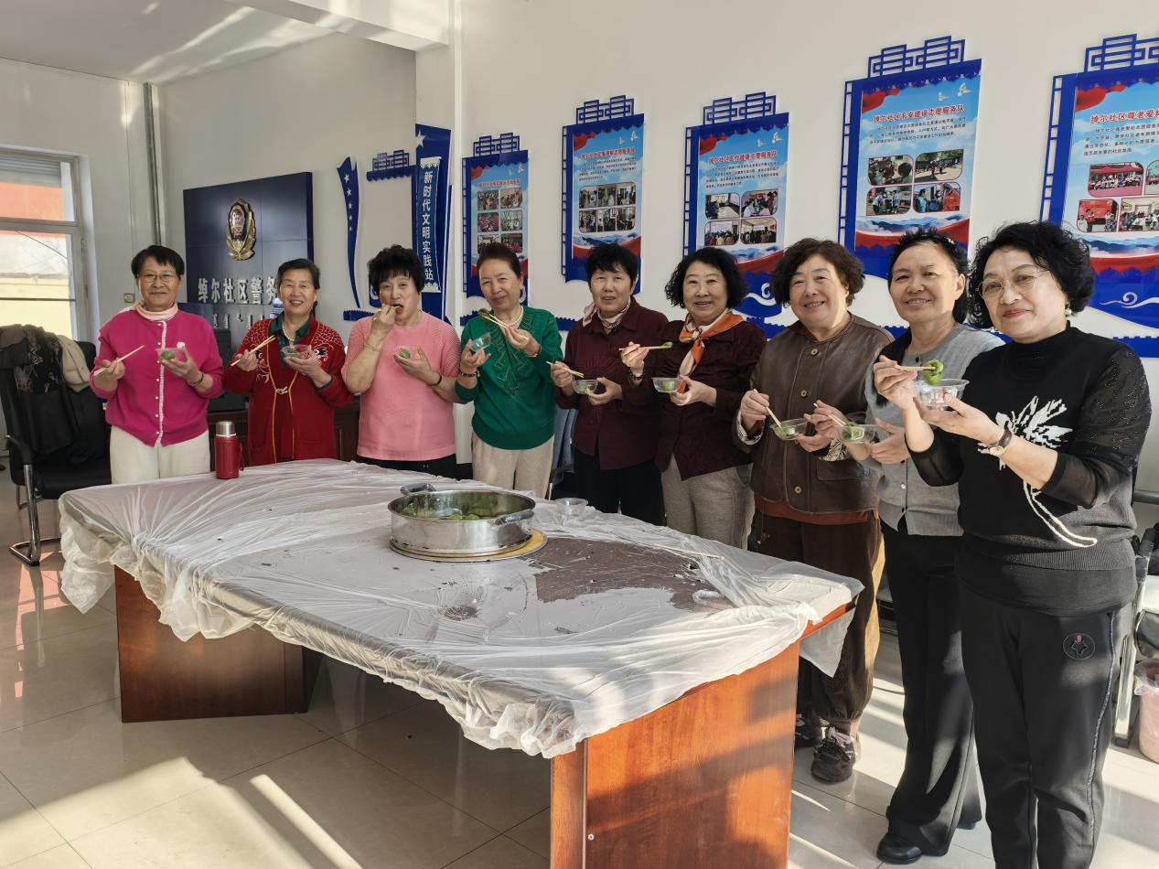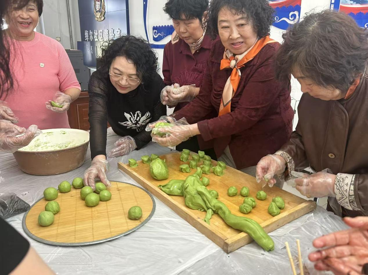 手工制作环节暖意融融,居民们亲手揉面、包馅、塑形,制作传统美食青团。蒸汽氤氲中,香气四溢,大家分食共享,在香甜口感里体验清明食俗魅力。活动最后,全体人员合影留念,社区负责人对活动进行总结,提醒居民注意返程安全。